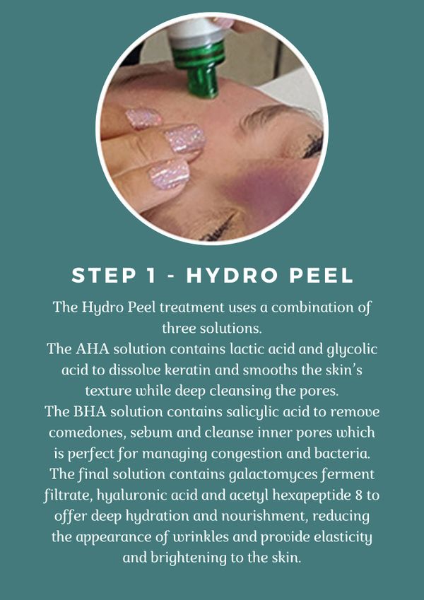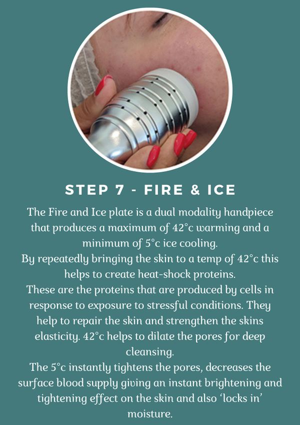 The 7-step facial treatment includes a 3D-Hydro Peel, Exfoliation, Oxygenation, Hydration, Skin Lifting & Tightening, Fire and Ice & Skin Lifting: