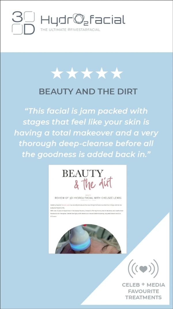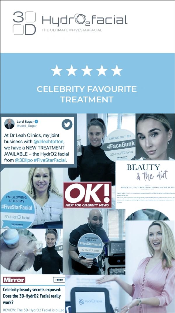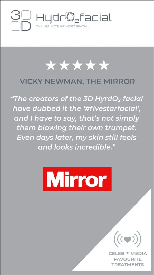 This is the ultimate 5-star experience which includes a Hydro Peel, Exfoliation, Oxygenation, Hydration, Skin Lifting & Tightening, Fire and Ice & Skin Lifting. The treatment is suitable for most skin types but a consultation with our Nurse Practitioner is advised before treatment.